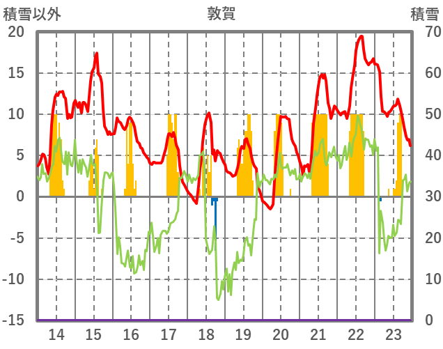 | 日 | 時 | 気温 | 降水 | 風向/風速 | 日照 | 積雪 | 降雪 |