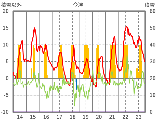 | 日 | 時 | 気温 | 降水 | 風向/風速 | 日照 | 積雪 | 降雪 |