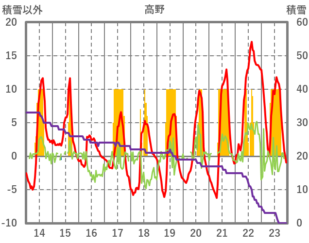 | 日 | 時 | 気温 | 降水 | 風向/風速 | 日照 | 積雪 | 降雪 |