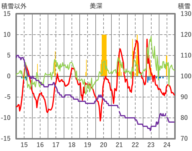 | 日 | 時 | 気温 | 降水 | 風向/風速 | 日照 | 積雪 | 降雪 |