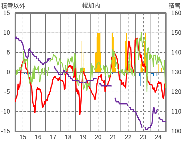 | 日 | 時 | 気温 | 降水 | 風向/風速 | 日照 | 積雪 | 降雪 |