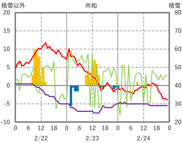 | 日 | 時 | 気温 | 降水 | 風向/風速 | 日照 | 積雪 | 降雪 |