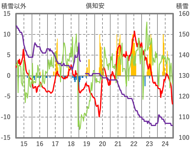 | 日 | 時 | 気温 | 降水 | 風向/風速 | 日照 | 積雪 | 降雪 |