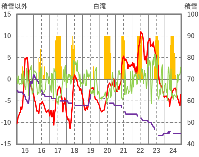 | 日 | 時 | 気温 | 降水 | 風向/風速 | 日照 | 積雪 | 降雪 |
