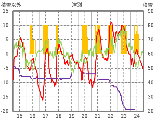 | 日 | 時 | 気温 | 降水 | 風向/風速 | 日照 | 積雪 | 降雪 |