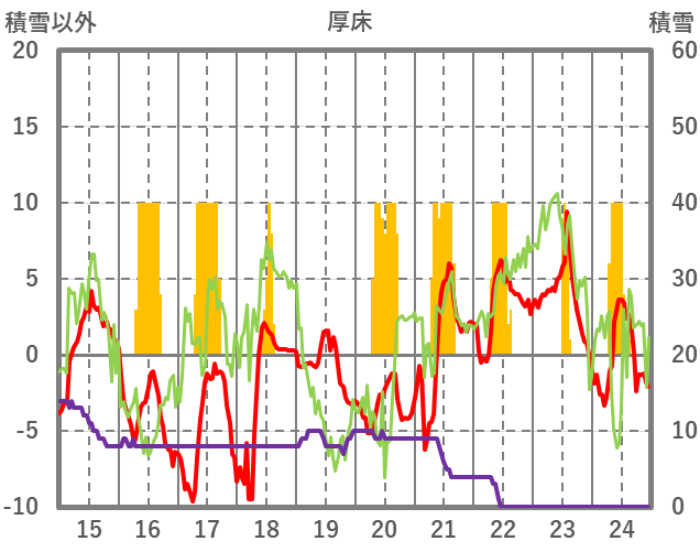 | 日 | 時 | 気温 | 降水 | 風向/風速 | 日照 | 積雪 | 降雪 |