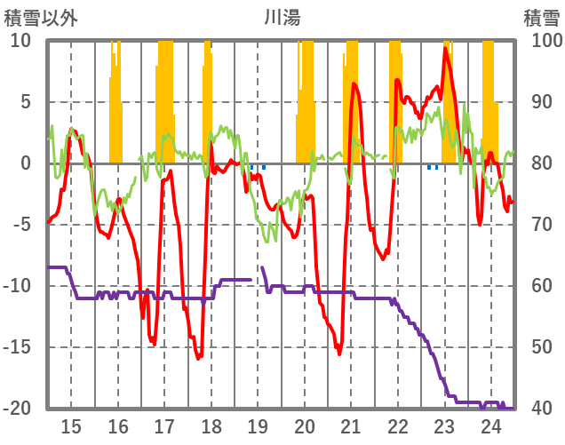 | 日 | 時 | 気温 | 降水 | 風向/風速 | 日照 | 積雪 | 降雪 |