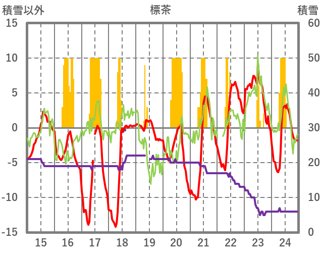 | 日 | 時 | 気温 | 降水 | 風向/風速 | 日照 | 積雪 | 降雪 |