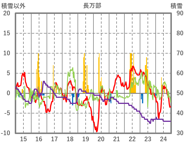 | 日 | 時 | 気温 | 降水 | 風向/風速 | 日照 | 積雪 | 降雪 |