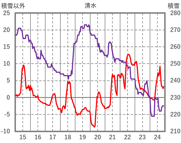 | 日 | 時 | 気温 | 降水 | 風向/風速 | 日照 | 積雪 | 降雪 |