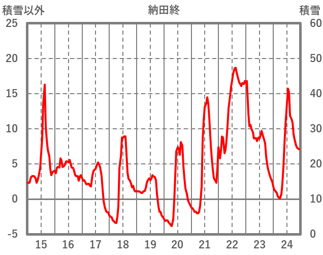 | 日 | 時 | 気温 | 降水 | 風向/風速 | 日照 | 積雪 | 降雪 |