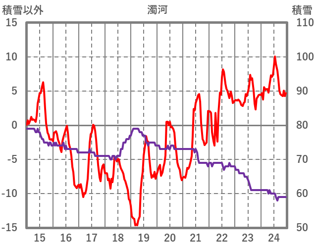 | 日 | 時 | 気温 | 降水 | 風向/風速 | 日照 | 積雪 | 降雪 |