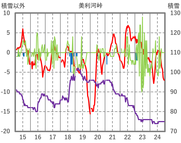 | 日 | 時 | 気温 | 降水 | 風向/風速 | 日照 | 積雪 | 降雪 |