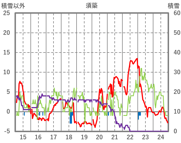 | 日 | 時 | 気温 | 降水 | 風向/風速 | 日照 | 積雪 | 降雪 |