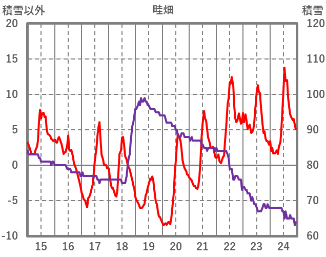 | 日 | 時 | 気温 | 降水 | 風向/風速 | 日照 | 積雪 | 降雪 |