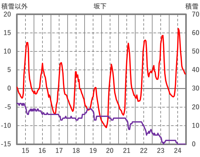 | 日 | 時 | 気温 | 降水 | 風向/風速 | 日照 | 積雪 | 降雪 |