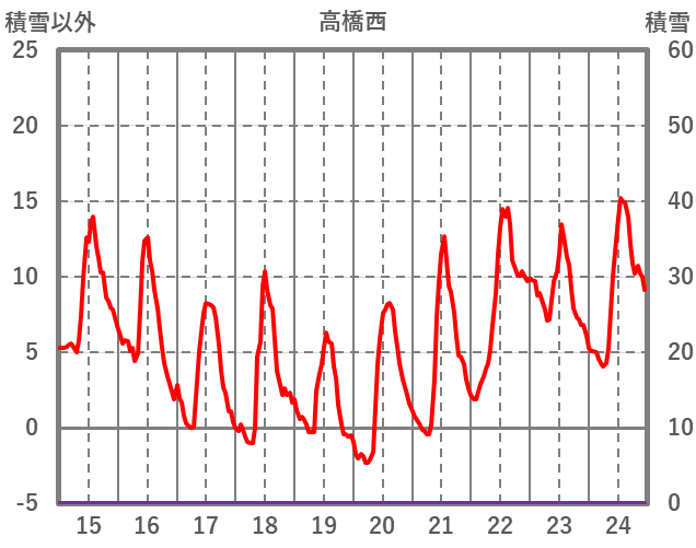 | 日 | 時 | 気温 | 降水 | 風向/風速 | 日照 | 積雪 | 降雪 |