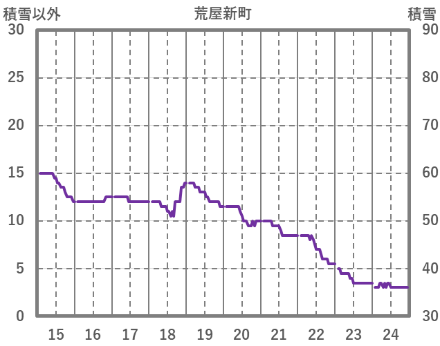 | 日 | 時 | 気温 | 降水 | 風向/風速 | 日照 | 積雪 | 降雪 |