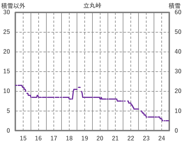 | 日 | 時 | 気温 | 降水 | 風向/風速 | 日照 | 積雪 | 降雪 |