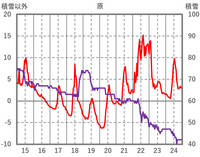 | 日 | 時 | 気温 | 降水 | 風向/風速 | 日照 | 積雪 | 降雪 |
