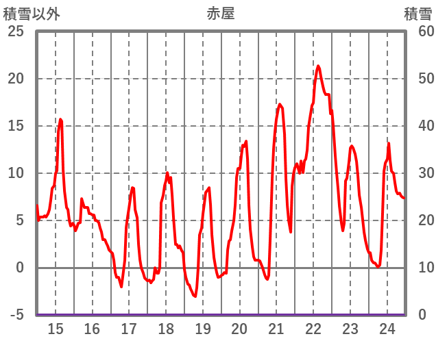| 日 | 時 | 気温 | 降水 | 風向/風速 | 日照 | 積雪 | 降雪 |