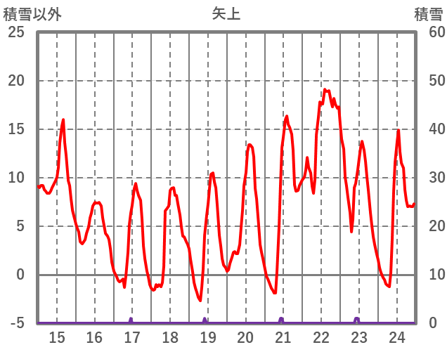 | 日 | 時 | 気温 | 降水 | 風向/風速 | 日照 | 積雪 | 降雪 |