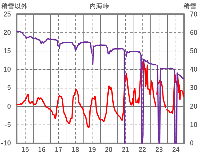 | 日 | 時 | 気温 | 降水 | 風向/風速 | 日照 | 積雪 | 降雪 |