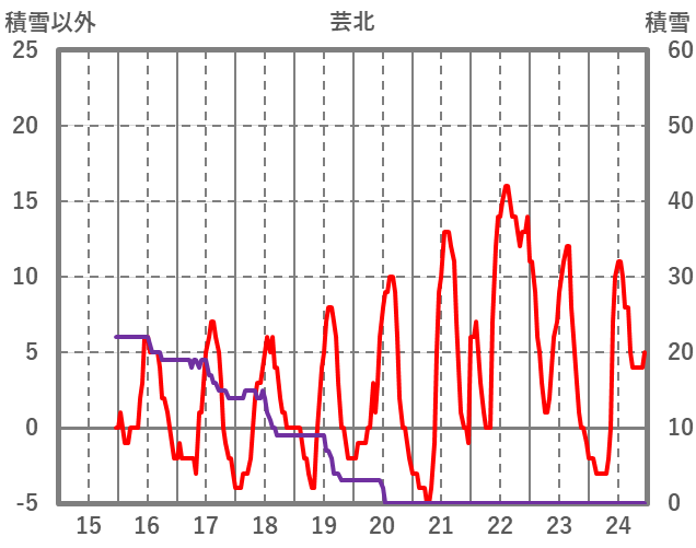 | 日 | 時 | 気温 | 降水 | 風向/風速 | 日照 | 積雪 | 降雪 |