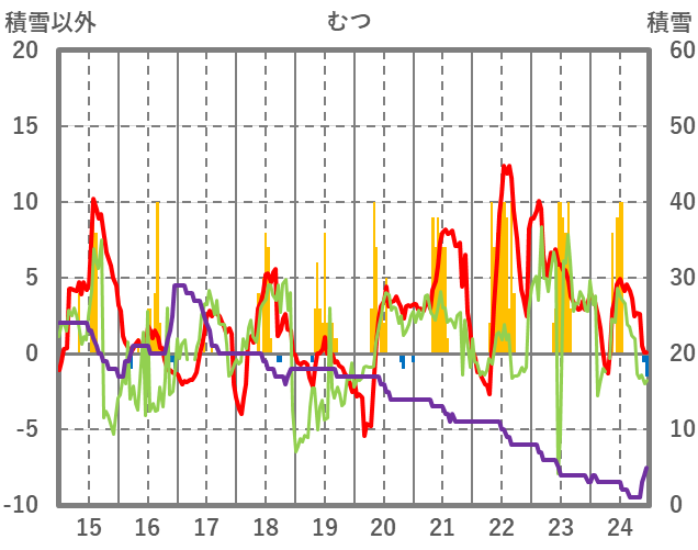 | 日 | 時 | 気温 | 降水 | 風向/風速 | 日照 | 積雪 | 降雪 |