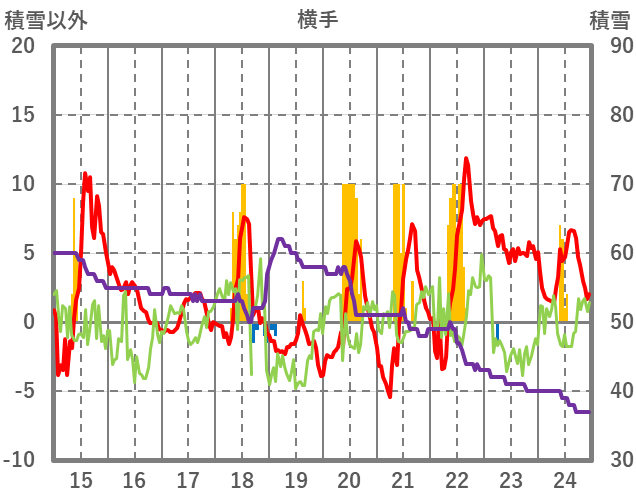 | 日 | 時 | 気温 | 降水 | 風向/風速 | 日照 | 積雪 | 降雪 |