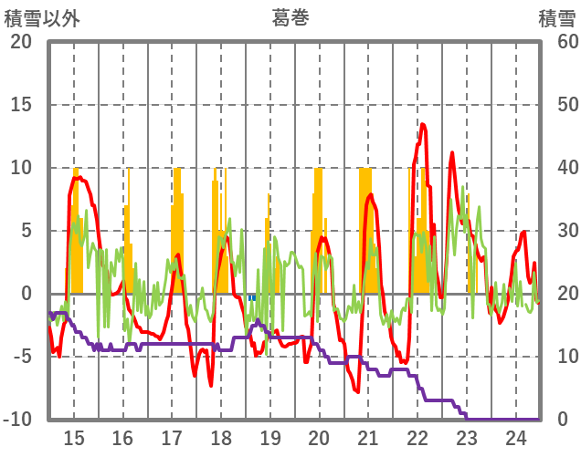| 日 | 時 | 気温 | 降水 | 風向/風速 | 日照 | 積雪 | 降雪 |
