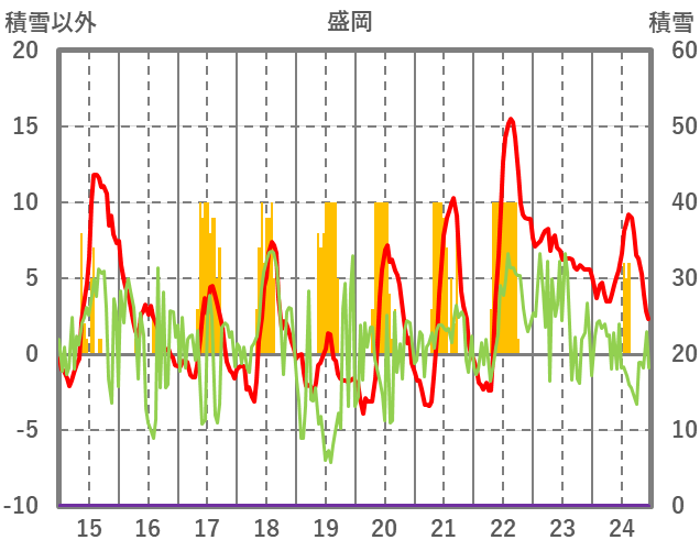 | 日 | 時 | 気温 | 降水 | 風向/風速 | 日照 | 積雪 | 降雪 |