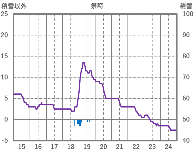 | 日 | 時 | 気温 | 降水 | 風向/風速 | 日照 | 積雪 | 降雪 |