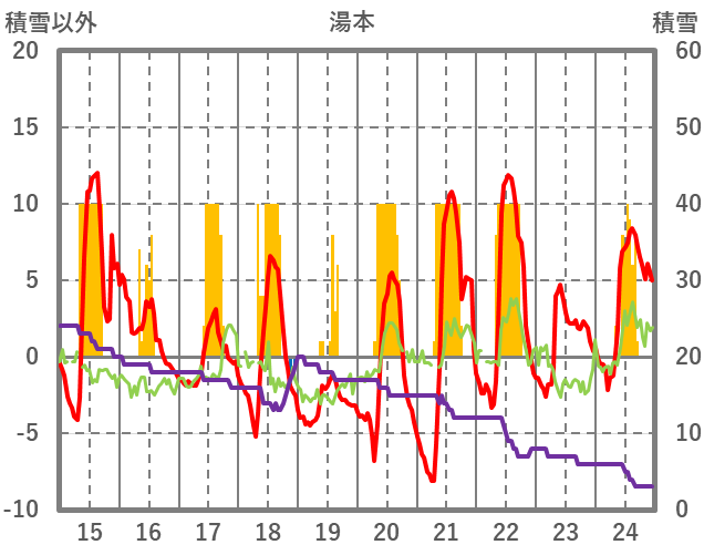 | 日 | 時 | 気温 | 降水 | 風向/風速 | 日照 | 積雪 | 降雪 |