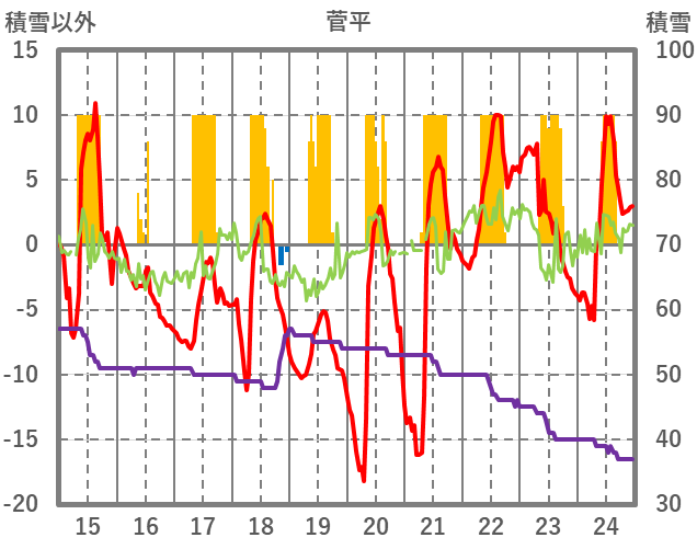 | 日 | 時 | 気温 | 降水 | 風向/風速 | 日照 | 積雪 | 降雪 |