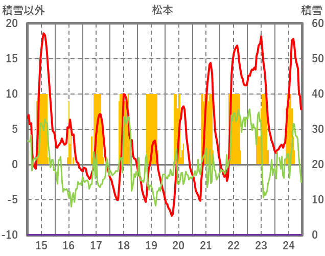| 日 | 時 | 気温 | 降水 | 風向/風速 | 日照 | 積雪 | 降雪 |