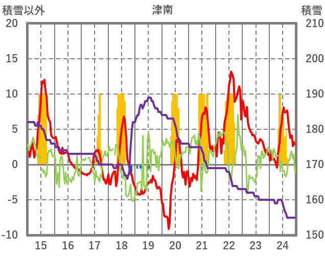 | 日 | 時 | 気温 | 降水 | 風向/風速 | 日照 | 積雪 | 降雪 |