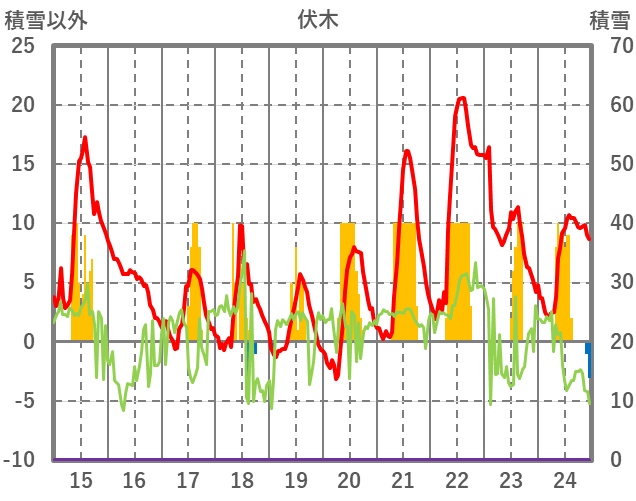 | 日 | 時 | 気温 | 降水 | 風向/風速 | 日照 | 積雪 | 降雪 |