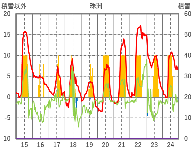 | 日 | 時 | 気温 | 降水 | 風向/風速 | 日照 | 積雪 | 降雪 |