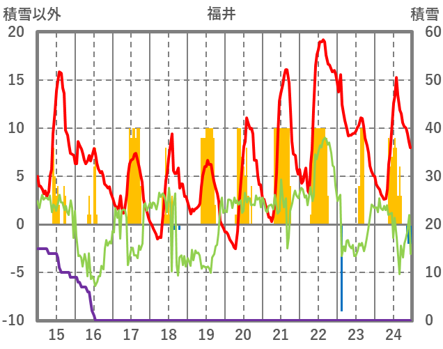 | 日 | 時 | 気温 | 降水 | 風向/風速 | 日照 | 積雪 | 降雪 |