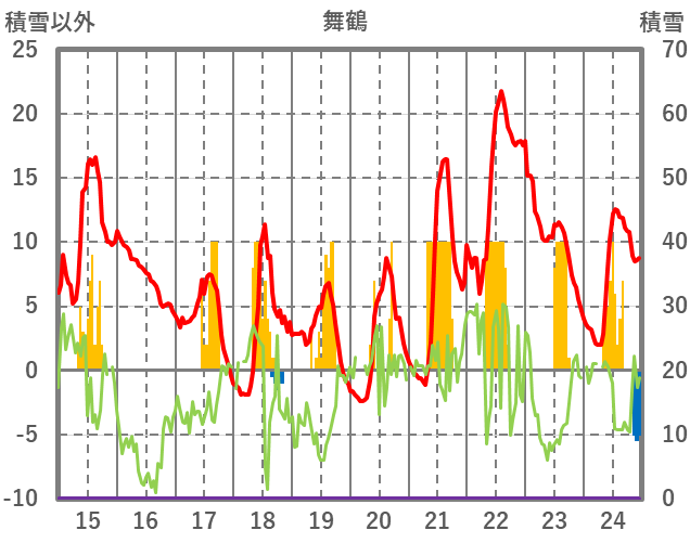 | 日 | 時 | 気温 | 降水 | 風向/風速 | 日照 | 積雪 | 降雪 |