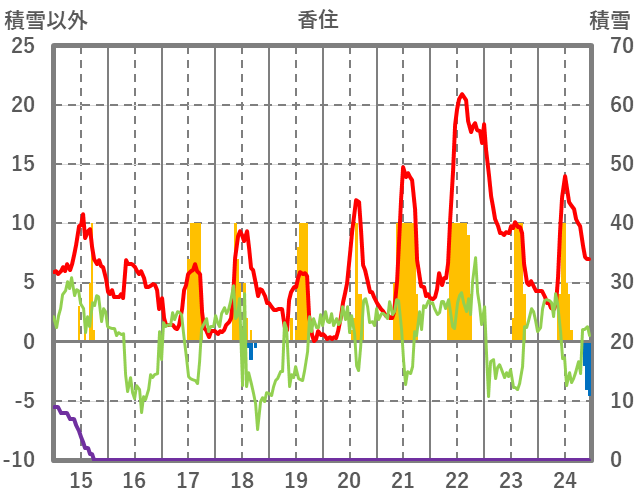 | 日 | 時 | 気温 | 降水 | 風向/風速 | 日照 | 積雪 | 降雪 |