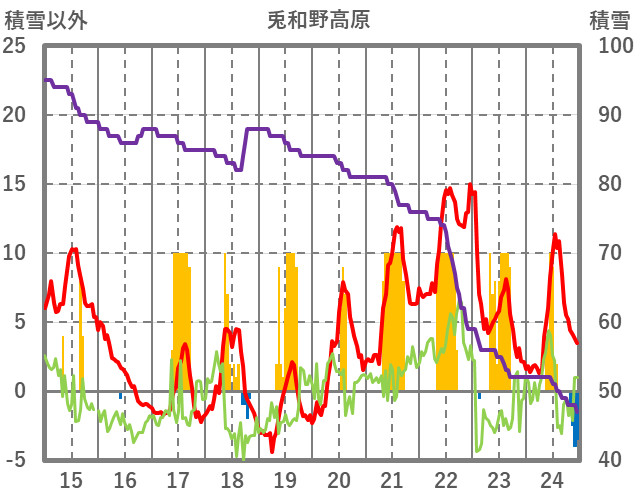| 日 | 時 | 気温 | 降水 | 風向/風速 | 日照 | 積雪 | 降雪 |