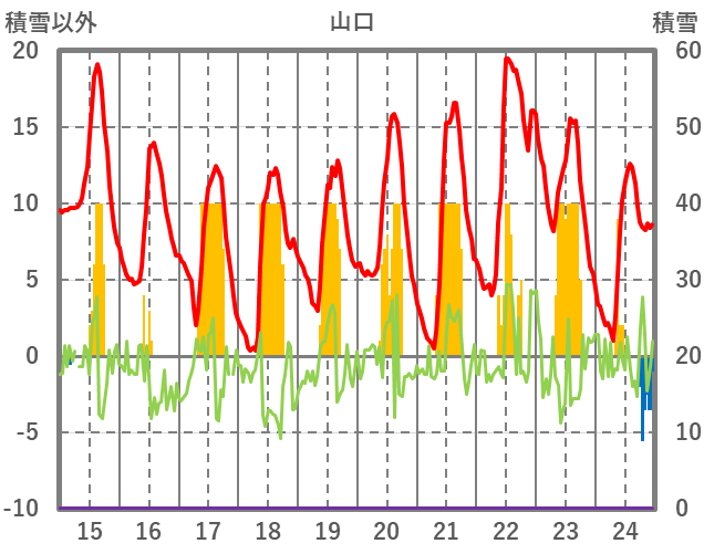 | 日 | 時 | 気温 | 降水 | 風向/風速 | 日照 | 積雪 | 降雪 |