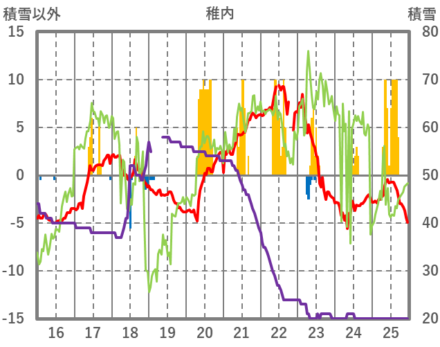 | 日 | 時 | 気温 | 降水 | 風向/風速 | 日照 | 積雪 | 降雪 |