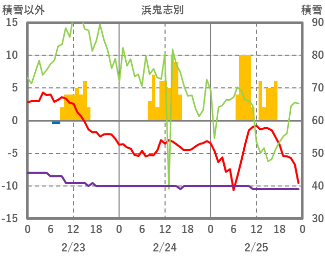 | 日 | 時 | 気温 | 降水 | 風向/風速 | 日照 | 積雪 | 降雪 |
