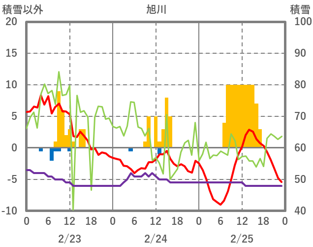 | 日 | 時 | 気温 | 降水 | 風向/風速 | 日照 | 積雪 | 降雪 |