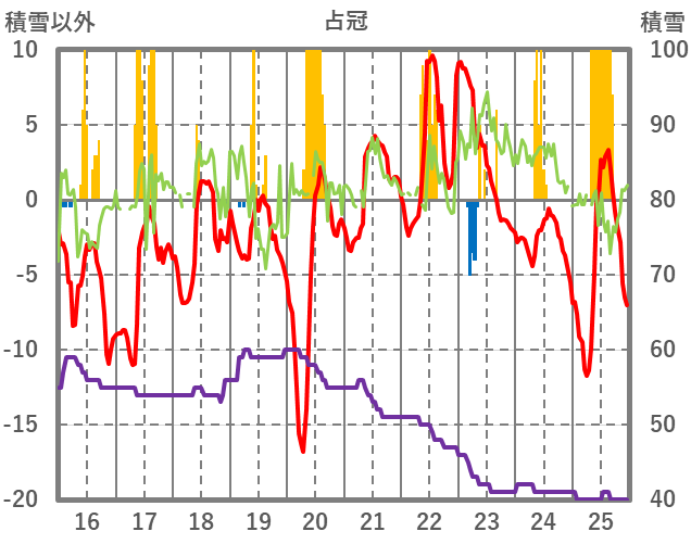 | 日 | 時 | 気温 | 降水 | 風向/風速 | 日照 | 積雪 | 降雪 |