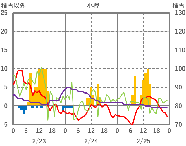 | 日 | 時 | 気温 | 降水 | 風向/風速 | 日照 | 積雪 | 降雪 |