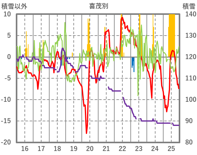 | 日 | 時 | 気温 | 降水 | 風向/風速 | 日照 | 積雪 | 降雪 |